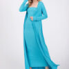 Meet “All Set To Go” — the effortlessly chic two-piece set that takes you from couch to cocktails without missing a beat. This aqua-colored ribbed ensemble features a seamless strapless midi dress that hugs in all the right places, paired with a matching open-front cardigan with long sleeves and a flowy silhouette. The fabric is ultra-stretchy, super soft, and made to move with you. Whether worn together or styled separately, this is the kind of set that keeps your look polished and your comfort on lock.