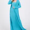 Meet “All Set To Go” — the effortlessly chic two-piece set that takes you from couch to cocktails without missing a beat. This aqua-colored ribbed ensemble features a seamless strapless midi dress that hugs in all the right places, paired with a matching open-front cardigan with long sleeves and a flowy silhouette. The fabric is ultra-stretchy, super soft, and made to move with you. Whether worn together or styled separately, this is the kind of set that keeps your look polished and your comfort on lock.
