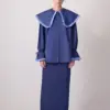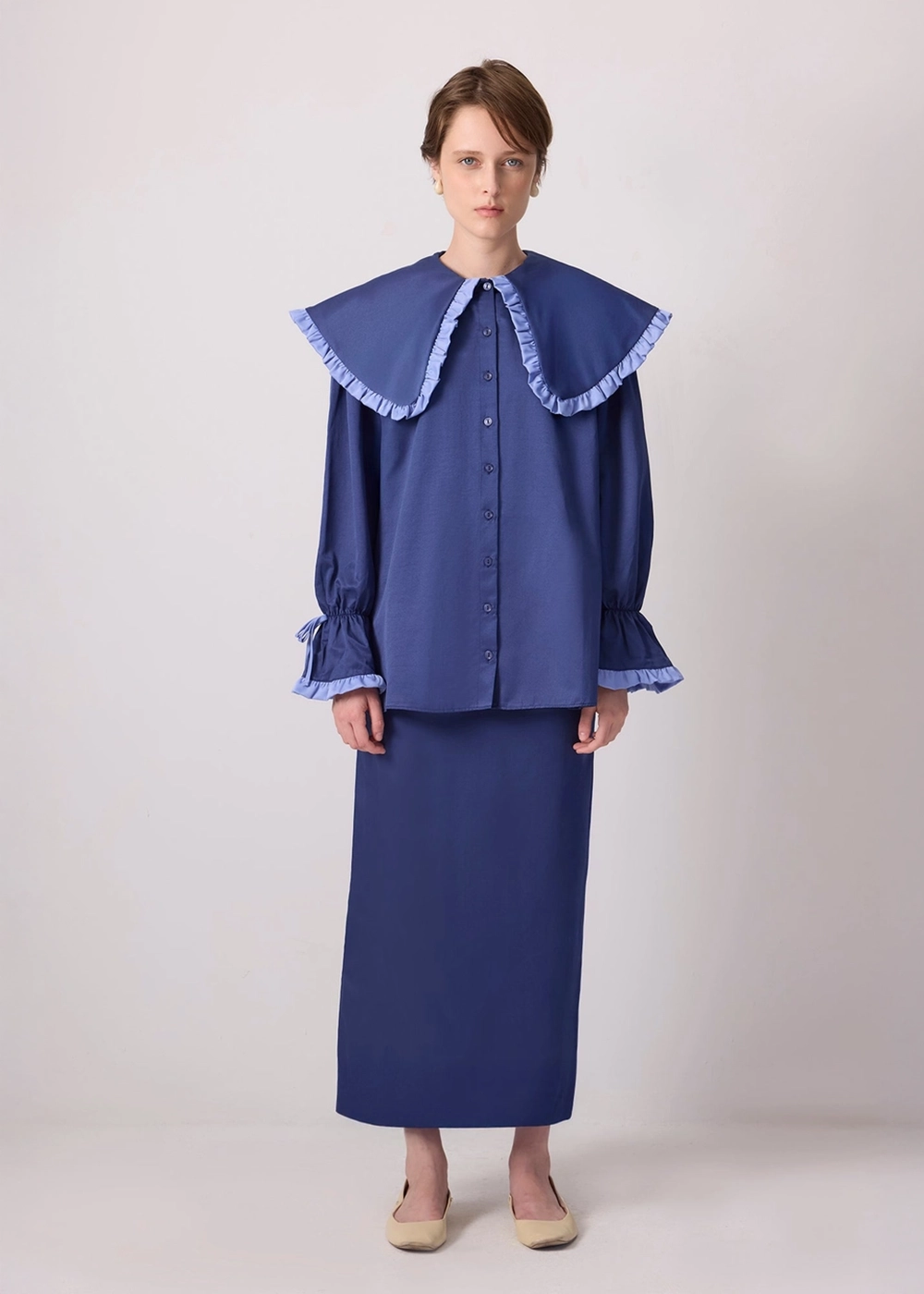 Step out with playful polish in the “Frilled To See You” 2-Piece Set—a navy skirt and blouse combo that balances whimsy with sleek tailoring. This is where frills meet focus, giving you vintage-inspired romance wrapped in crisp cotton perfection.