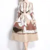 The printed blouse brings visual interest with a clean, button-front design, while the high-waist pleated skirt adds movement and refinement. With no stretch, this set holds its shape for a crisp, elevated silhouette that feels intentional from every angle.