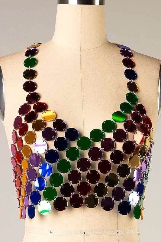 Pair this stunning top with high-waisted jeans or a chic skirt to complete your look. Whether you’re dancing the night away or making a bold fashion statement, the “Over The Rainbow” top will keep you shining bright.