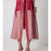 Design: Sheer burgundy organza with oversized front pockets