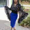 Spotlight Siren is a show-stopping chiffon blouse designed for the woman who dresses like every moment is a photo op. The deep V-neck adds just the right amount of allure, while the stretchy cinched waistband creates a snatched silhouette that balances the dramatic layered bell sleeves. Polka dots keep it playful; the structure keeps it powerful. This is the piece that makes you unforgettable.