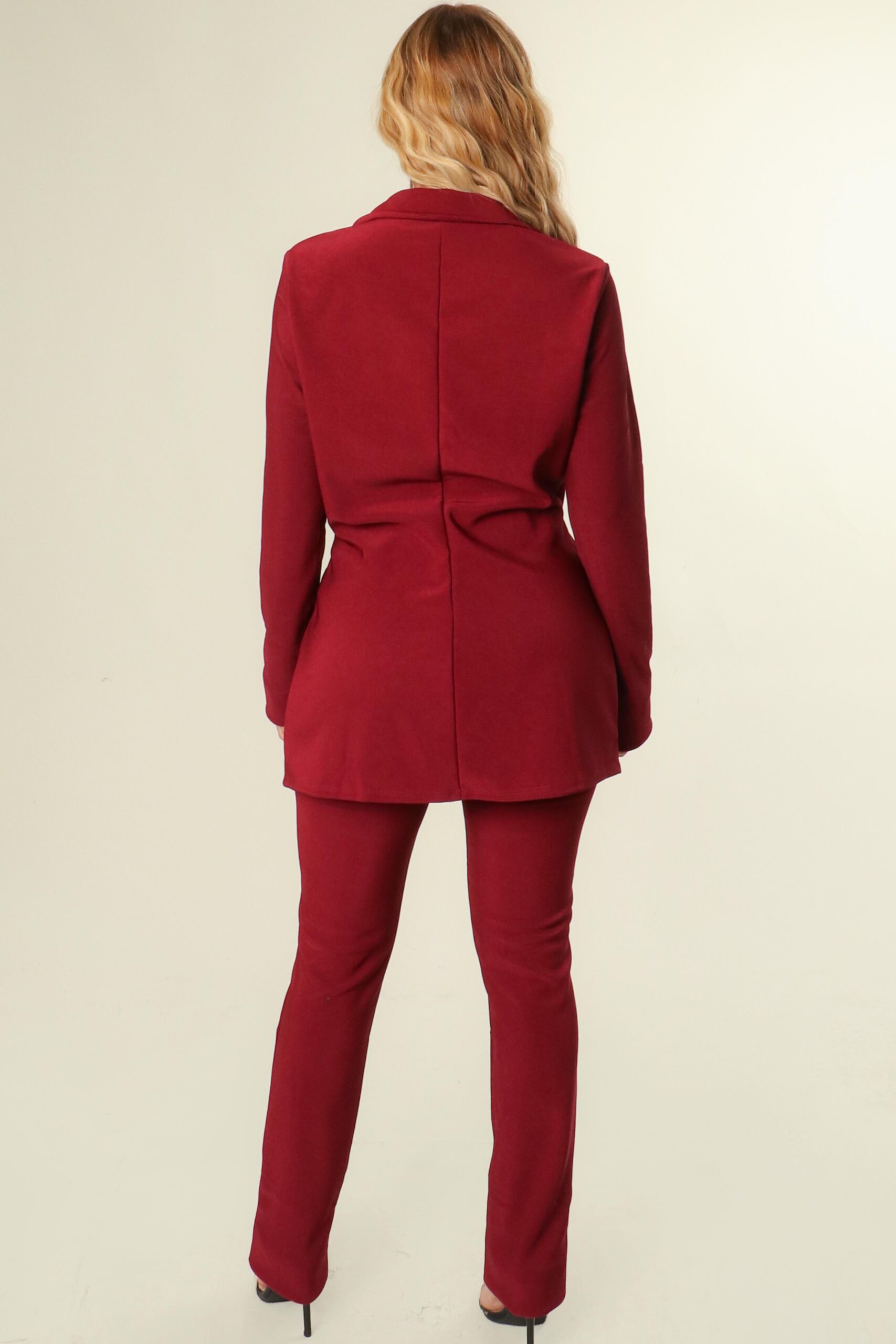 The “Suit-Able Date” set in rich burgundy is everything you didn’t know you needed in a blazer and pant combo. Tailored to perfection with a sleek single-button blazer and high-rise trousers, this set is made to command attention. The solid color keeps it classic, while the silhouette adds that Edge Girl attitude. Whether you’re heading to dinner, drinks, or a last-minute plan that suddenly matters, this fit is ready.Fit Alert: Runs small — we recommend going up one size for a confident, curve-skimming fit.