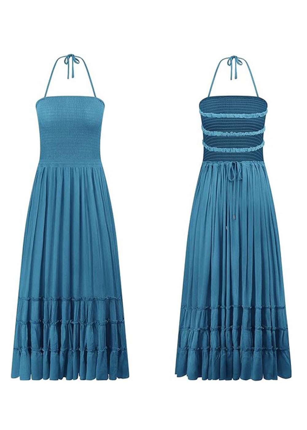 It’s giving easy, breezy, and beautiful — all summer long. The Sundress SZN maxi dress is that effortless piece you throw on and instantly feel like a dream. Designed with a smocked bodice for a comfortable, flattering fit and finished with a ruffled tiered hem that flows with every step. But let’s talk about the back: triple strap detail and an open-back moment that makes turning around a whole vibe. Whether you’re headed to brunch, a beach date, or just catching a breeze, this is the one. Available in brown, fuschia, and blue.