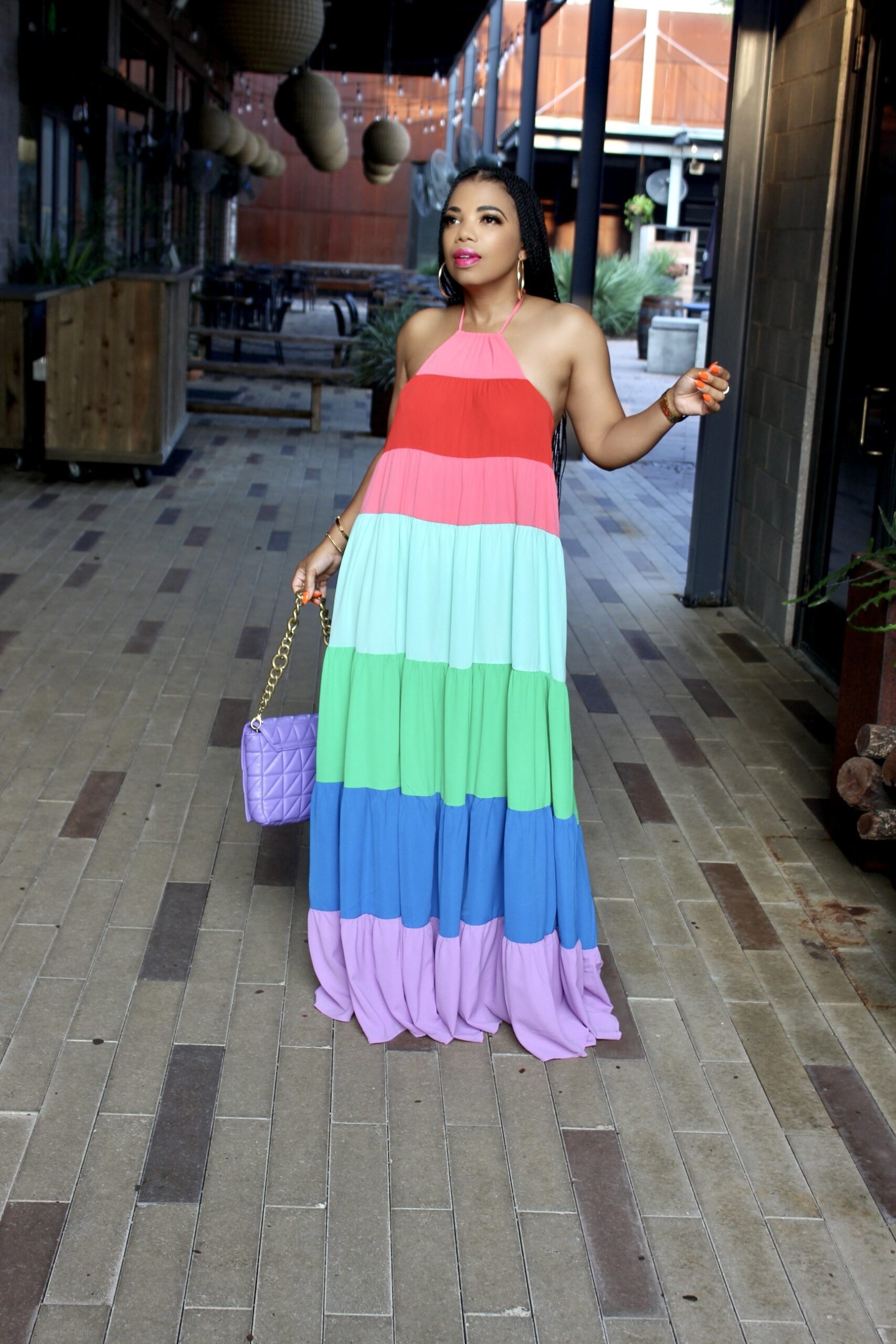 Step into the spotlight with the “Taste The Rainbow” dress—a perfect blend of playful charm and vibrant style that will make every moment feel like a celebration.