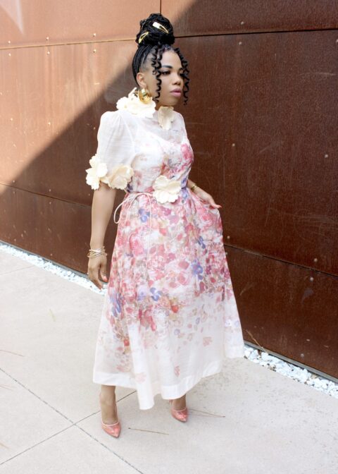 Go glam with strappy heels and a statement earring, or keep it breezy with sandals and a crossbody bag. Either way, she’s ready when you are.